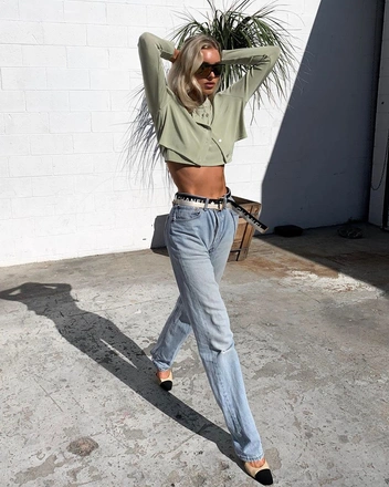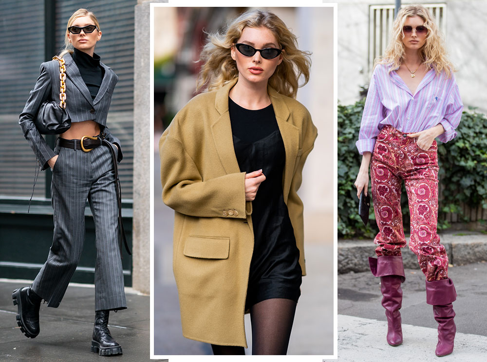 Эльза Хоск получила от природы классическую нордическую красоту с идеальными скулами и светлыми волосами, а как бонус — длинные ноги, которые она любит демонстрировать на фотографиях. Чтобы подчеркнуть свои природные данные, она часто делает ставку на длину мини, выбирая экстремально короткие платья и юбки. Правда, в этом случае она старается играть на контрастах и комбинирует мини с оверсайз-фасонами. Например, к короткому платью подбирает жакет с мужского плеча, а к микро-шортам — объемный свитшот.
