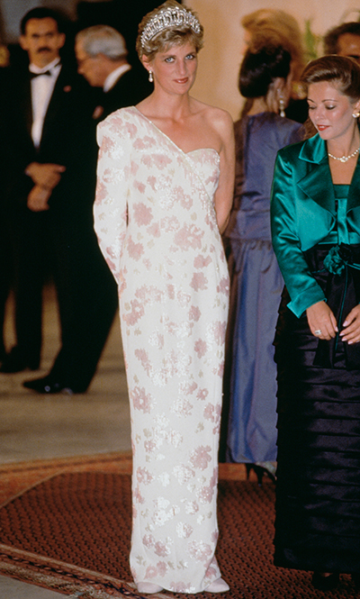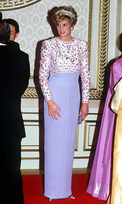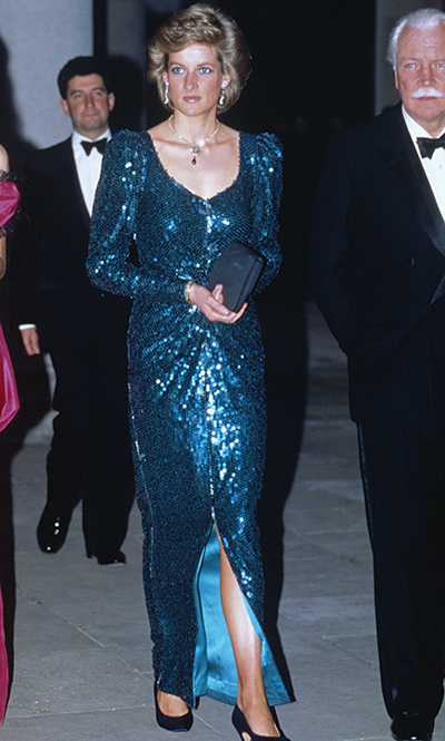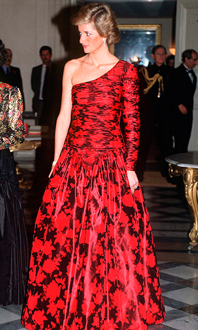 Единственным правилом, которое Диана не могла и не хотела нарушать, была поддержка отечественного производителя: почти вся ее одежда в статусе жены наследника престола готовилась британскими дизайнерами. Брюс Олдфилд шил для принцессы Уэльской наряды с неестественно большими рукавами, Элизабет Эммануэль поражала асимметрией и драпировкой, а Виктор Эдельштейн вооружался бархатом и являл миру настоящие шедевры. Одним из них стало платье-русалка с приема королевской четы у президента Рейгана — том самом, где Диана кружилась в танце с Джоном Траволтой. Позднее, уже после ее смерти, оно было продано за рекордные 240 тысяч фунтов, что по сегодняшним меркам равняется 11 миллионам рублей.