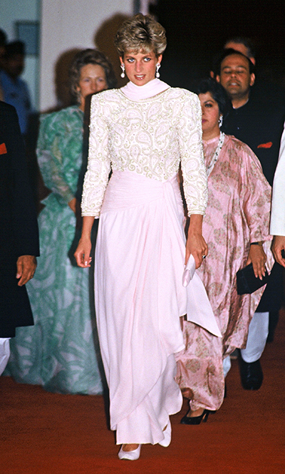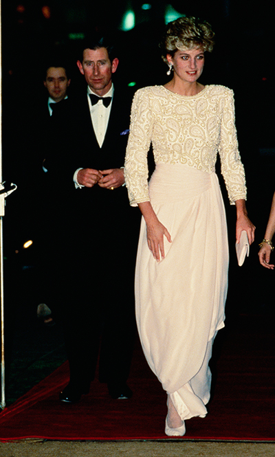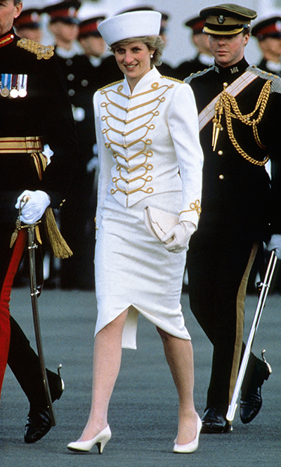 Явным фаворитом среди дизайнеров у леди Ди была Кэтрин Уолкер. Ей доверялись костюмы для важнейших приемов ее высочества, будь то банкет с первыми лицами государства или дебют на красной дорожке Каннского кинофестиваля. Нельзя сказать, что Кэтрин не подводила молодую принцессу (стоит вспомнить хотя бы ее вельветовый наряд для визита в Германию), но, кажется, только она понимала резкую смену настроений Дианы и старалась отобразить это в повседневной и вечерней одежде.