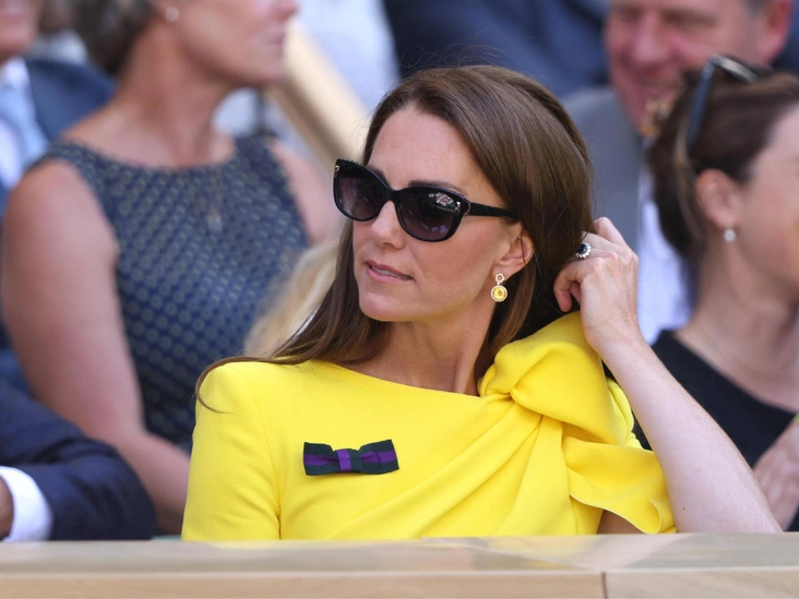 В тринадцатый день Уимблдона королевская особа появилась на трибунах в ярко-желтом платье Roksanda Ilincic, в котором уже видели ранее в том же году во время визита на Карибы. Это был редкий случай, когда герцогиня была замечена в шляпе.