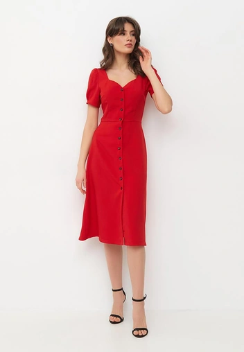 Когда-то Кейт часто появлялась на публике в одежде и обуви британской марки среднего ценового сегмента L.K. Bennett. Это морковно-красное платье, выбранное для девятого дня чемпионата 2015 года, как раз из их числа. Его герцогиня дополнила классическими бежевыми туфлями на среднем каблуке и вечерним клатчем.
