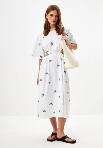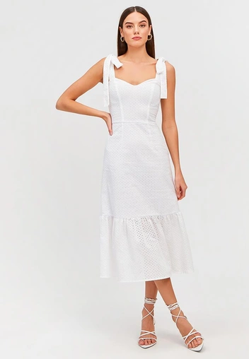 Это белое платье Zimmermann в технике английского шитья украсило четвертьфинальный матч в мужском одиночном разряде между Роджером Федерером и Стэном Вавринкой. Ее Высочество неожиданно появилась с плетеной сумкой в виде веера, которую она не так давно вернула к жизни во время одного из зарубежных туров.