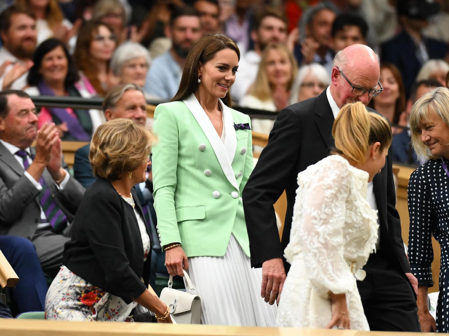 Наряд, состоящий из светло-зеленого блейзера Balmain с белыми лацканами, перекликающимися с плиссированной белой юбкой, в котором Кэтрин предстала в королевской ложе вместе с Роджером Федерером и его женой Миркой на втором дне Уимблдонского чемпионата 2023 года во Всеанглийском клубе, заслужил сравнения с гардеробом предыдущей принцессы Уэльской, Дианы. Прежде именно она считалась главной иконой стиля Уимблдона (читайте также: Спортивный интерес: самые стильные образы Дианы на Уимблдоне).