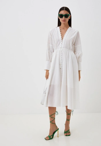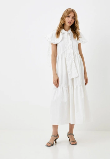 А вот во второй день Уимблдонского чемпионата 2019 года Ее Высочество выбрала белоснежное двубортное платье с контрастными черными пуговицами и поясом марки Suzannah.
