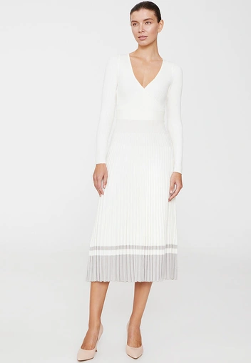 Трикотажное белое платье Alexander McQueen с темно-синими полосками — образец спортивного стиля в духе ретро. Наряд авторства Сары Бертон Кембриджская выбрала, чтобы посмотреть с принцем Уильямом, как Энди Мюррей играет с Дэвидом Феррером в мужском четвертьфинале 2012 года. И это один из самых удачных образов в истории Уимблдона.