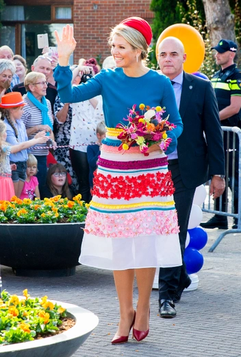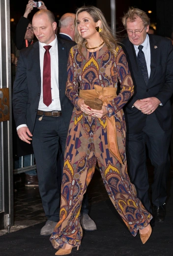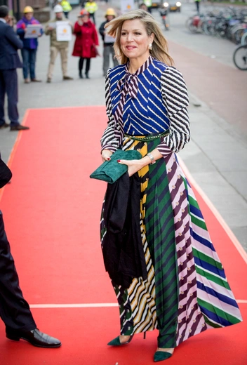 Еще одна модная любовь Максимы — комбинации нескольких разнообразных принтов, которые многие комбинировать остерегаются. Это, конечно, задача не из простых, но королева-консорт не боится сочетать даже самые, на первый взгляд, несочетаемые паттерны — например, цветочный орнамент и полоску. Отличный пример ее мастерского умения играть с самыми сложными принтами — образ от Mary Katrantzou на концерте во время ежегодного празднования Дня короля в апреле 2018 года.
