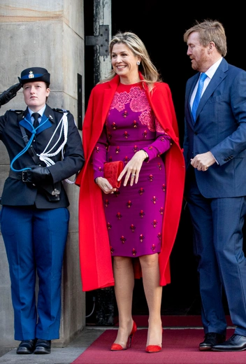 Хотя красный цвет давно стал главным фаворитом ее испанской коллеги королевы Летиции, максима также нередко пользуется палитрой алого. В ее случае этот оттенок не перетягивает на себя все внимание: королева-консорт настолько яркая и излучает столько энергии, что, кажется, никакой другой цвет не сможет перекрыть ее индивидуальность.