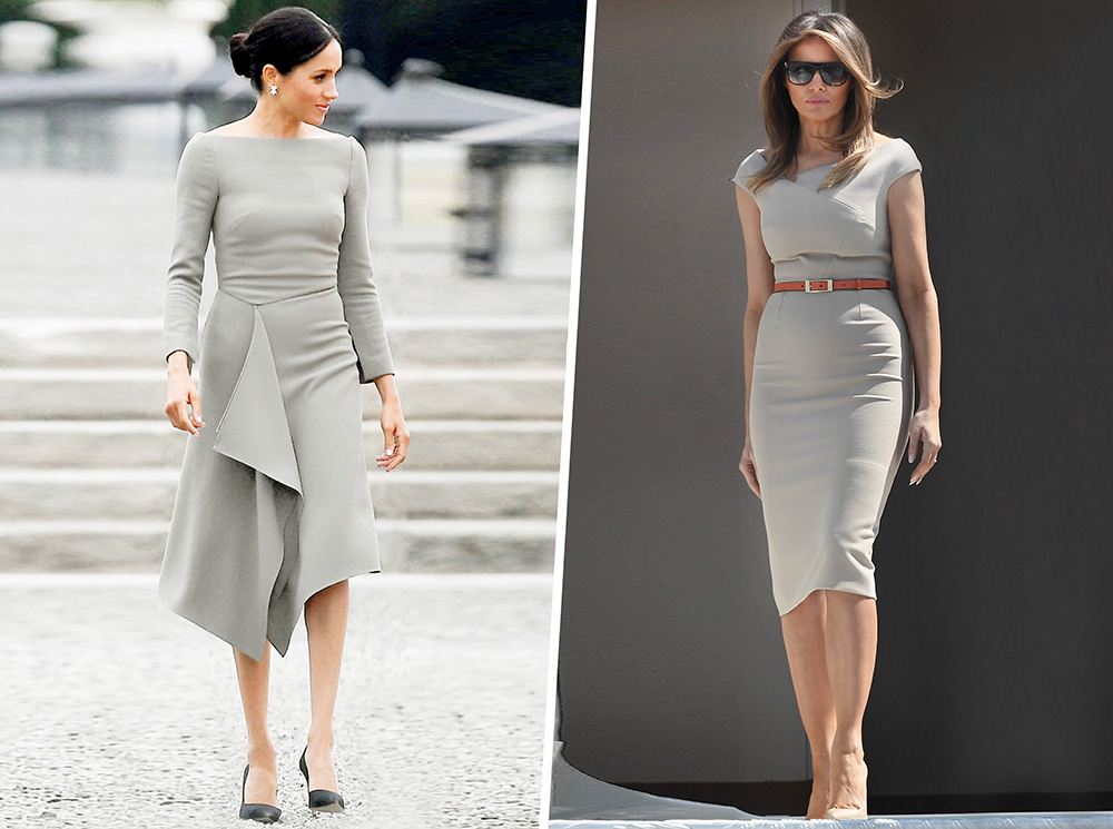 Совпадение? Выбор нарядов герцогини и Первой леди США в последние дни показался модным обозревателям не то чтобы знаковым, но весьма интригующим. «Меган трансформируется в Меланию? Мелания превращается в Меган? Или же мы становимся свидетелями того, как обе женщины возрождают или даже задают новые стандарты power dressing?», – задается вопросом обозреватель The Telegraph.