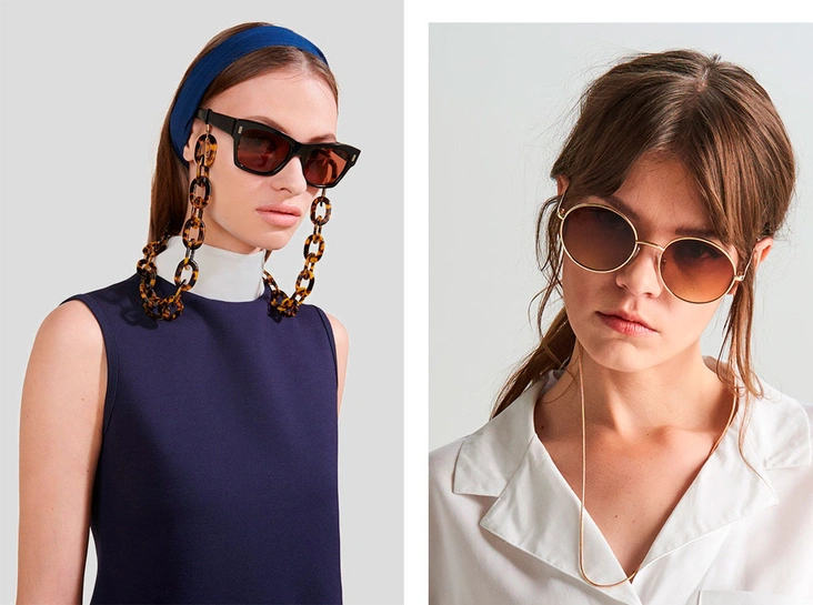 Эстеты, отвергающие всю возможную прагматику в моде, могут рассматривать такие аксессуары как удачное дополнение к другим деталям — пусть цепочки на очках будут перекликаться с вашими подвесками или ожерельем на шее. Самые актуальные сочетания сейчас — жемчуг, цветные бусины и маленькие ракушки (читайте также: Заколки, ободки и резинки: самые модные украшения для волос нового сезона).