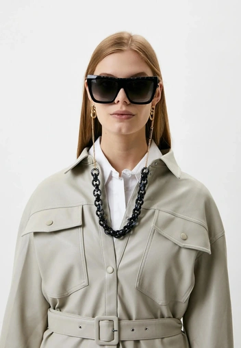 Выбор материалов, из которых сейчас делаются самые актуальные цепочки для очков, — в разы шире, чем предлагалось дамам викторианской эпохи. Ваши дополнения могут быть выполнены из крупных пластиковых звеньев, металлических цепей, с бисером, барочным жемчугом и крупными бусинами. В весенне-летней коллекции бренд Max Mara предлагает нам самый простой вариант: добавить толстую веревочку к классическим авиаторам — такие не унесет даже самый сильный порыв ветра.