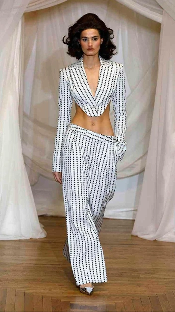 О тренде «офисных сирен» заговорили зимой этого года: девушки сексуализируют строгие брючные костюмы в полоску и придают им чувственный подтекст. Тенденцию задала Белла Хадид, появившись на улицах Нью-Йорка в узких «офисных» рубашках с открытым декольте и очками прямоугольной формы. Sergio Hudson и LaQuan Smith тоже поэкспериментировали с популярным трендом и показали, что жить он будет как минимум еще год (читайте также: Офисная сирена: как повторить самый чарующий тренд этого года — 20 бесподобных идей).
