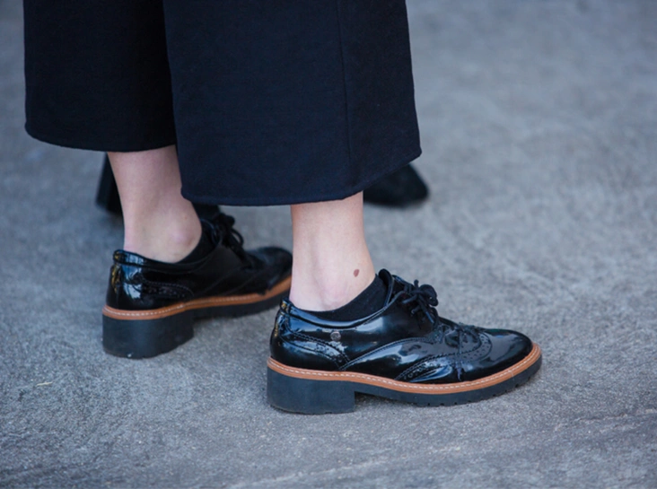 Оксфорды или дерби, брогированные или нет — выбирать только вам. Главное — избегайте чрезмерно массивной подошвы, она вам ни к чему, а вот интересные фактурные решения приветствуются.