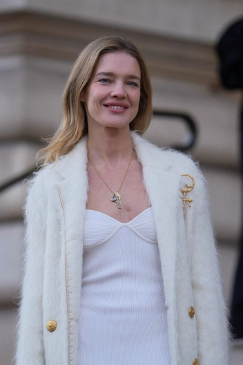 Наталья Водянова показала, кажется, самый уютный образ на показе Schiaparelli. На кремовое платье в рубчик супермодель надела уютное пушистое пальто с золотыми пуговицами. А в сочетании с остроносыми замшевыми ботильонами и винтажной сумкой Schiaparelli вышел идеальный непринужденный, но стильный наряд, который подойдет как для повседневных выходов, так и для вечерних мероприятий.