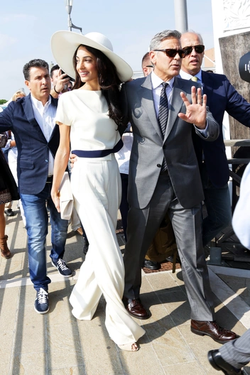 Фотографии в белом костюме Stella McCartney и роскошной шляпе после ее выхода с Джорджем в 2014 году (один из свадебных образов звезды) разлетелись по всем СМИ, а полосатое платье Dolce&Gabbana, которое девушка надела в Венеции в сентябре того же года, до сих пор пользуется популярностью.