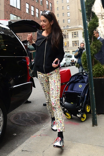 Известно, что до замужества гардероб юриста не был таким безупречным: Амаль была неравнодушна к блестящим нюдовым колготкам, цветным оксфордам в сочетании с объемными брюками и черным бесформенным вещам. Любительница рваных джинс, крупных черных очков, комбинезонов — миссис Клуни всегда дополняет свой лук очаровательной улыбкой, и это заслуживает отдельной похвалы.(читайте также: Нескучный офисный стиль Амаль Клуни: 6 правил от звездного юриста)