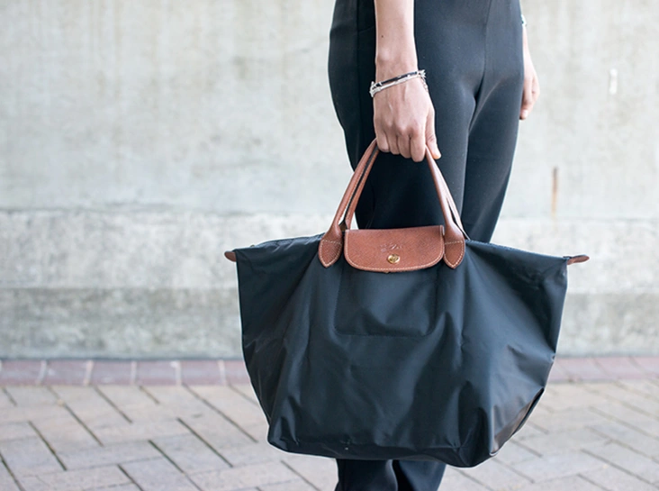 Нейлон, прежде использовавшийся при изготовлении разве что парашютов и тентов, действительно оказался очень удачным материалом для модных экспериментов. В 1993 году появляется другая знаменитая сумка из этого синтетического материала — Le Pliage от французского бренда Longchamp. Ключевая особенность этого вместительного тоута заключена в его способности складываться до размеров книга в формате А5 — что в иных ситуациях оказывается очень полезным и приятным бонусом.