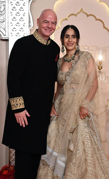 Когда рестлер Джон Сина вышел на ковровую дорожку в своем нежно-голубом национальном индийском наряде под названием «шервани», фотограф воскликнул: «Добро пожаловать в Индию!». Индийская актриса Приянка Чопра, одетая в золотую лехенгу и украшения Bvlgari, прибыла на свадьбу Ананта и Радхики со своим супругом певцом Ником Джонасом, который выгодно смотрелся в светло-розовом шервани, гармонируя с супругой в цветовой гамме.