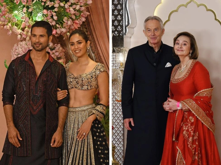 Бывший премьер-министр Великобритании Тони Блэр и его жена Чери Блэр, которые контрастировали друг с другом из-за сочетания черного и красного, судя по их модному выбору, одобренному критиками, знали, что надевать на свадьбу в Мумбаи. Другая звездная пара, Шахрукх Кхан, более известный как «король Болливуда», и его жена, кинопродюсер Мира Раджпут, почтила своим вниманием не только церемонию бракосочетания, но и предсвадебные мероприятия, организованные Амбани.