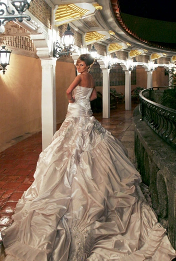 Мелания Трамп (тогда еще Кнаусс) в преддверии свадьбы с Дональдом Трампом заказывала платье именно в Доме Christian Dior. Фотография платья будущей первой леди США появилась на обложке американского Vogue за несколько дней до свадьбы, ее показали все модные сайты. Там было на что посмотреть! На платье ушло 90 метров белого атласа, 1500 жемчужин и драгоценных камней, шили его больше 550 часов. Правда, платье миссис Трамп стоило больше 200 тысяч, но фантазия человека безгранична! Впрочем, вы уверены, что хотите платье, которое весит больше 20 килограммов и надевать которое вам будут помогать несколько человек? Меланию грузили в лимузин восемь специально нанятых для этого мужчин...