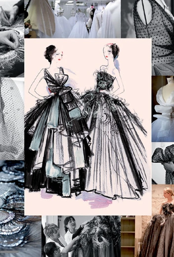 Я сама в свое время сбила ноги в кровь, пока нашла более или менее подходящее. Но это «более или менее» меня совершенно не устраивало. Оставался один вариант – шить по собственному эскизу. До Парижа я не доехала, но моя крестная, человек из мира искусства, познакомила меня с Натальей Михайловной Дзюбенко. Она художник по костюмам, одевала фильмы «Книга мастеров», «1612», «Анна Каренина». Я притащила к ней в мастерскую ворох заготовок, вырезок из журналов, фотографий из интернета, лоскутков ткани. Я даже сделала mood-board (коллаж с вдохновляющими картинками – такие обязательно составляют дизайнеры в процессе работы над коллекциями). Наталья Михайловна на все это посмотрела и согласилась: «Такое купить трудно. Будем шить». Я несколько раз приезжала к ней на примерку, чтобы платье село идеально. Мы выбирали крой рукавов, пуговицы, отделку. Впрочем, у меня был весьма скромный бюджет. Но если вы готовы не скупиться на свою мечту, то в ателье Christian Dior Haute Couture над ней будет трудиться целая армия мастеров: вырезать лекала, любовно пришивать жемчужинку к жемчужинке и полировать пуговки.