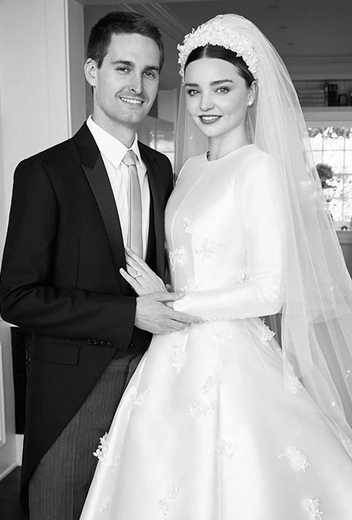 В 2017 году в платье от Dior, которое создала уже новый креативный директор Мария Грация Кьюри, замуж за владельца Snapchat Эвана Шпигеля вышла Миранда Керр. Вдохновением для эскиза стал свадебный наряд Грейс Келли, который, впрочем, был не от Кристиана Диора, а от дизайнера и костюмера студии MGM Хелен Роуз. «Миранда захотела нечто сказочное, – говорит Мария Грация, – Платье, которое было бы одновременно простым и драматичным. Меня эта идея тоже чрезвычайно увлекла». Наряд получился довольно целомудренным, с закрытыми плечами и длинными рукавами, но, тем не менее, эффектным: на блестящем сатине были вышиты аппликации в виде белых лилий. «Свадебное платье от Dior! По-моему, это мечта каждой девушки!» – комментирует сама невеста.