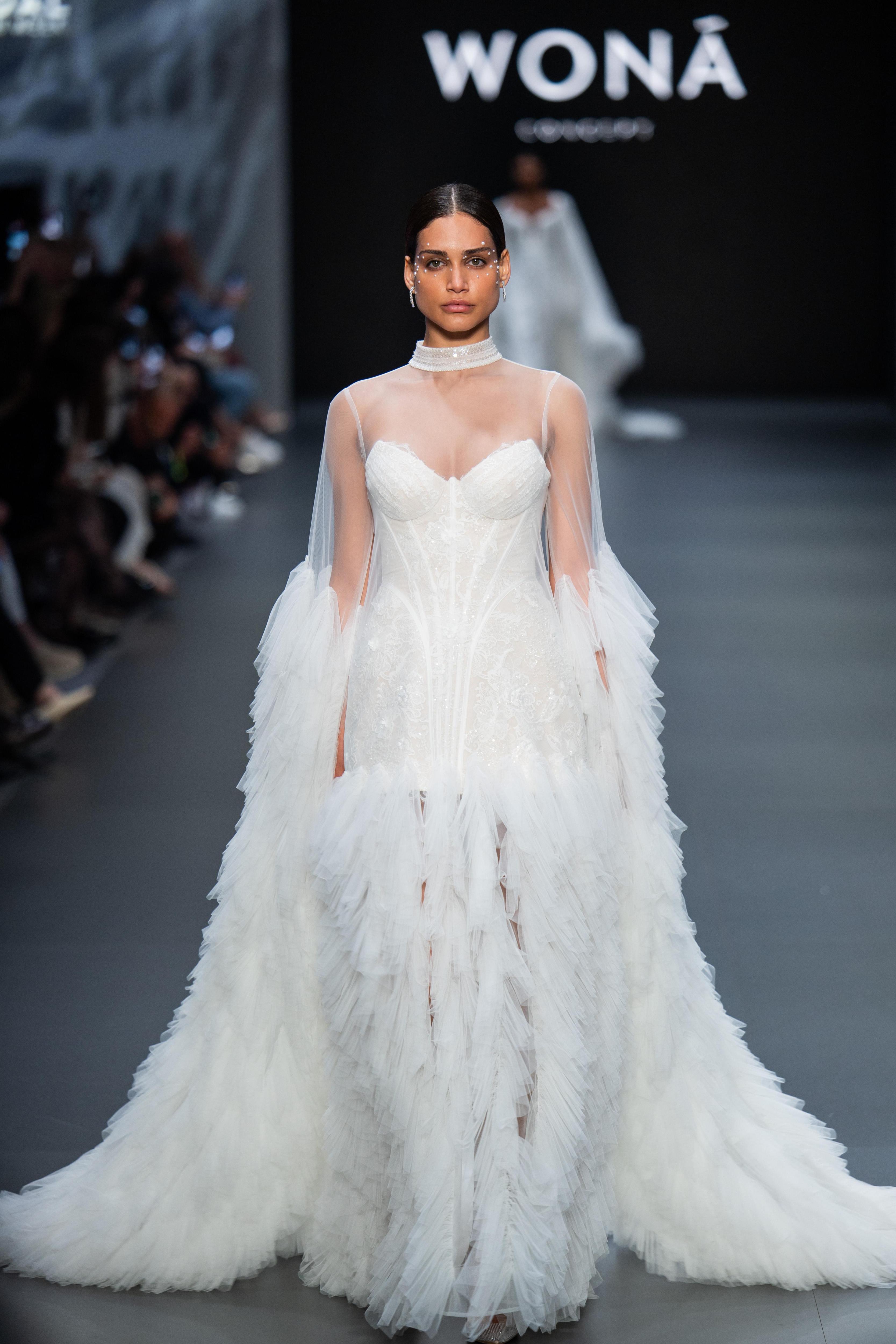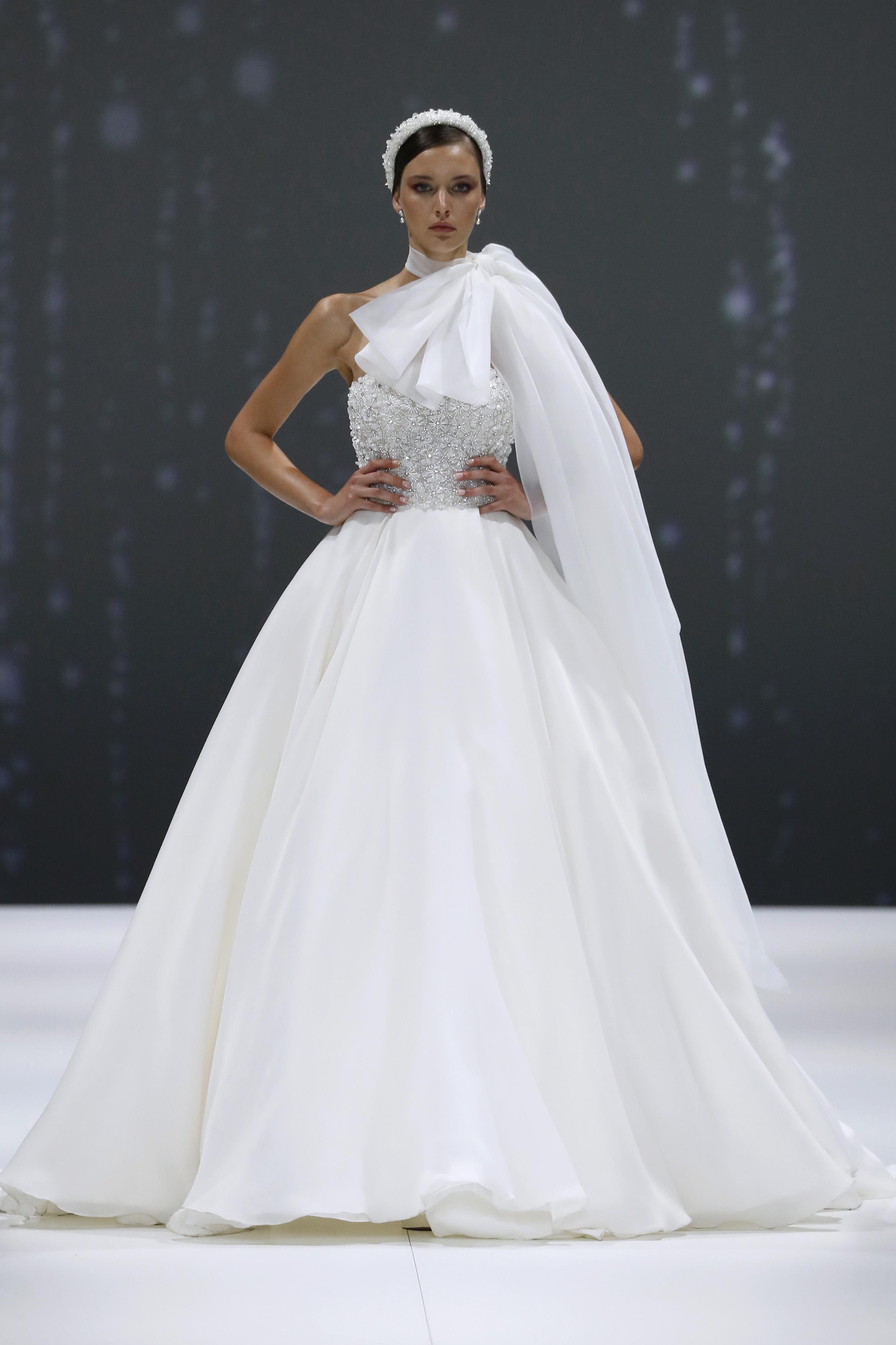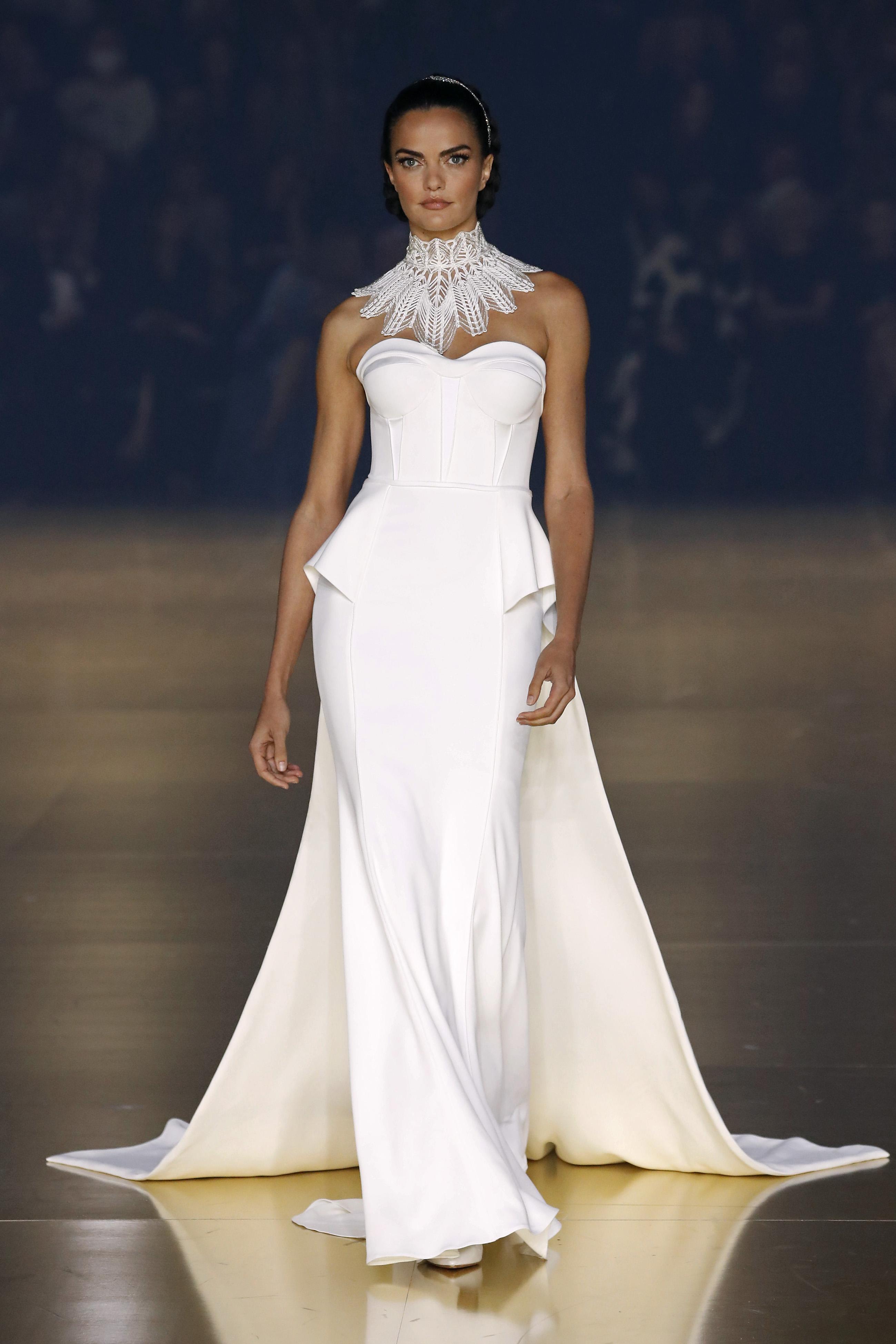 В свадебных образах мы прослеживаем те же тенденции, что и в глобальной моде. Здесь два противоположных вектора: либо минимализм и лаконичность (простое платье, прямое или чуть задрапированное, из качественного материала с элегантными аксессуарами), либо предельная сложность, архитектурный объем, много деталей и современное прочтение свадебного образа.