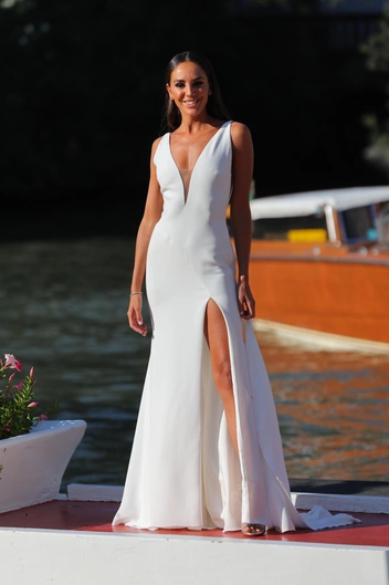 Такое свадебное платье с разрезом идеально подходит для выездных церемоний, вечеринок у воды или вечеров, где танцы — не опция, а обязательная часть программы. Свадебные платья 2026 с разрезом особенно красиво смотрятся с лаконичными босоножками — здесь обувь фактически становится акцентом.