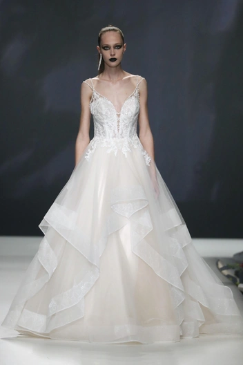 Пышные свадебные платья 2026 никуда не исчезают, но становятся более актуальными за счет чистых линий и меньшего количества «сладкого» декора. В новых коллекциях платья с объемными юбками шьют из структурных тканей, которые дают объем без ощущения многослойного торта.