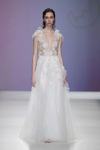 История про драпировки, мягкие «облачные» юбки, рюши, цветочный декор и кружево, когда свадебные платья 2026 выглядят как иллюстрация к любовному роману. Этот вариант предпочитают большинство современных невест, ведь такие образы вне времени и актуально будут выглядеть на фотографиях и много лет спустя.
