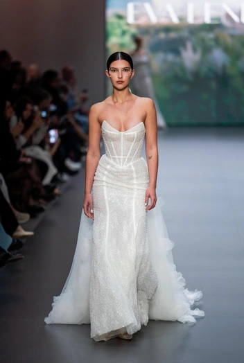Свадебное платье с корсетом по‑прежнему в числе фаворитов среди свадебных платьев 2026, но его подача немного изменилась: меньше утяжки ради эффекта «осиной талии», больше поддержки и правильной посадки. Такой корсет можно встретить и в пышных платьях, и в тандеме с прямыми моделями, которые мягко подчеркивают линию бедра.