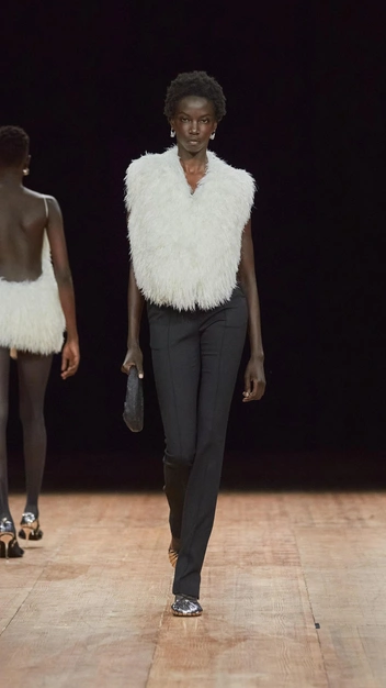 Мех мы видели и на других Неделях моды, но французы придали ему элегантность и женственность, а не уже привычную нам дерзость (читайте также: Это стиль: 10 трендов осени и зимы 2023/24 с Недели моды в Лондоне). Мы увидели не только шубы и дубленки с отделкой, но и меховые накидки, которые возвращают нас в эпоху Золотого Голливуда, когда все светские дамы держали в руках поверх вечернего платья в пол изящный аксессуар.
