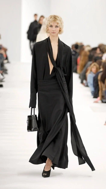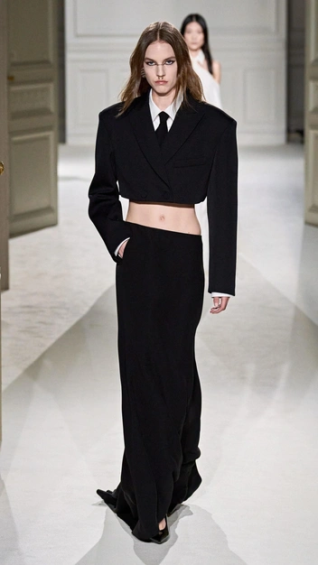 Если в Нью-Йорке мы наблюдали сексапильные мини, то Париж выражает чувства через длину макси. Юбки на низкой посадке элегантно плывут за моделями и придают каждому образу томность. Сочетать их нужно со струящимися блузами, как на показе Givenchy, или со строгими жакетами с белой рубашкой и галстуком, как у Valentino.