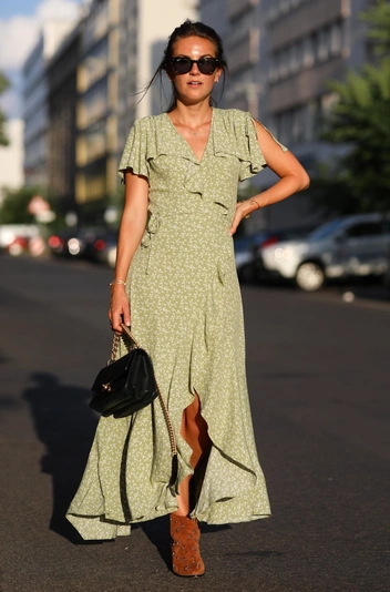 Отправляясь на природу, всегда хочется надеть что-то легкое и простое. Поэтому, основой этого образа послужит сарафан, он может быть на тонких бретелях или со спущенными плечами — что будет добавлять романтики образу. В качестве принта может быть горошек или цветы в пасторальном стиле, намекающие на деревенскую романтику. Если же прогулка продлится до позднего вечера и похолодает — накиньте на плечи объемный кардиган или свитер, это сделает образ более уютным.