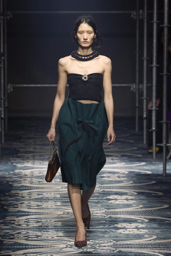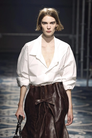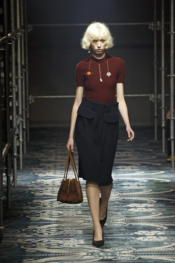 Главный секрет — дизайнер взяла классические фасоны, но сделала их более расслабленными и свободными. Например, перед нами как бы базовая юбка карандаш — но приглядитесь. Несмотря на прямой фасон, юбка не обтягивает фигуру — на смену облегающему силуэту пришел комфортный крой. И это настоящий подарок для современной женщины в большом городе: с одной стороны, вы не нарушаете дресс-код и носите любимые деловые вещи. С другой — не чувствуете себя в них скованно. Prada предлагают сочетать юбку либо с объемным бомбером, либо с трикотажным поло. В последнем случае мы играем с пропорциями — свободный низ и более строгий верх всегда придают динамики образу.