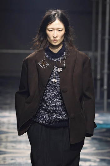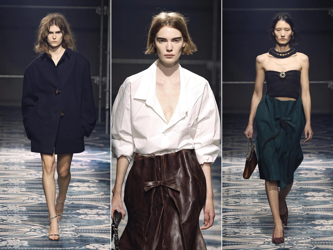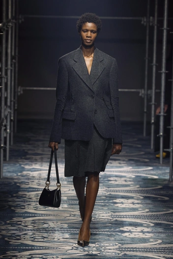 Осенью 2025 носим пальто с четкой и острой, словно ножи, линией плеч — а вот блейзеры покупаем ровно противоположные. Перед нами плавные линии, мягкие ткани, как шерсть и кашемир, и никакого намека на облегающий фасон. Этому тренду мы, безусловно, рады: носить рубашку, а на ней еще и плотно прилегающий пиджак — утомительно в течение рабочего дня. Очередная классическая вещь в офис, которую Prada переделали под наш запрос.