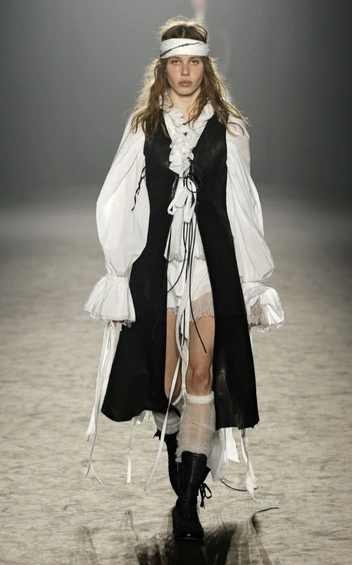 Мы уже несколько лет используем ткани вместо классических резинок — шелк не даст соврать. Теперь завязывать волосы мы будем и банданой. Небрежно завяжите бандану с принтом, или сделайте бант в стиле кокетт-кор шелковой банданой. Только вот резинку под низ все равно лучше повязать, если на прическу есть планы дольше пяти минут.