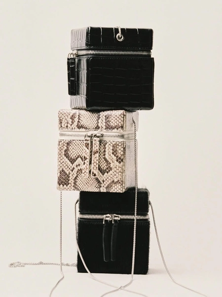 Сочетайте с шелковым платьем-комбинацией и лодочками, если нужен классический выход, или с шелковой блузой и фактурным кейпом, если вам ближе история про «все тренды сразу». Еще один удачный прием — сочетать мини-сундучок с объемным свитером и миди-юбкой: строгая форма сумки уравновешивает мягкие фактуры и делает образ более городским.