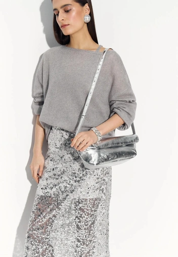 Жесткий корпус, четкие линии, лаконичная фурнитура — такая модель сразу собирает воедино любой праздничный лук и делает его чуть более графичным. Ее легко вписать и в вечер с дресс-кодом, и в камерный домашний праздник: просто меняйте остальные детали.