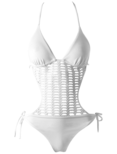 Почувствуйте себя Пятницей Робинзона Крузо в купальнике из тонкой, почти прозрачной вязки. Использовать с загадочной улыбкой и легким загаром.