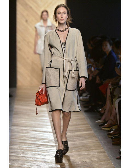 Дополнительные сантиметры к длине также получил пиджак, который теперь надевается на голое тело, имитируя коктейльное платье. Для должного эффекта его не обязательно носить с классическими лодочками, как это делалось, когда пиджак был лишь частью классического костюма. Так, Kenzo комбинирует такое платье с сандалиями-гладиаторами, Versace сочетает его с ботильонами на толстой подошве, а Fausto Puglisi подбирает к платью-пиджаку ковбойские сапоги, доказывая, что такой наряд будет смотреться выигрышно в любом ансамбле.