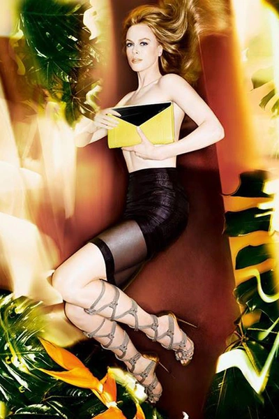 В рекламной кампании Jimmy Choo в третий раз участвует 46-летняя Николь Кидман (Nicole Kidman). Теперь концепция снимков поменялась: вместо напряженной и мрачной девушки в стиле «нуар», которую актриса изображала для рекламы прошлой коллекции, Николь Кидман предстает в экстравагантном полуобнаженном образе. Актриса на фото будто зависла в воздухе, находясь в современных джунглях, где неон и листва соседствуют друг с другом. Рекламу снимал норвежский фотограф Сольве Сундсбо. Креативный директор Jimmy Choo Сандра Чой (Sandra Choi) сказала об актрисе: «Я люблю открытость Николь, с которой она создает нового персонажа и каждый сезон превращается в новую личность, которая отражает дух коллекции. Недавно Jimmy Choo анонсировали выход капсульной коллекции очков.