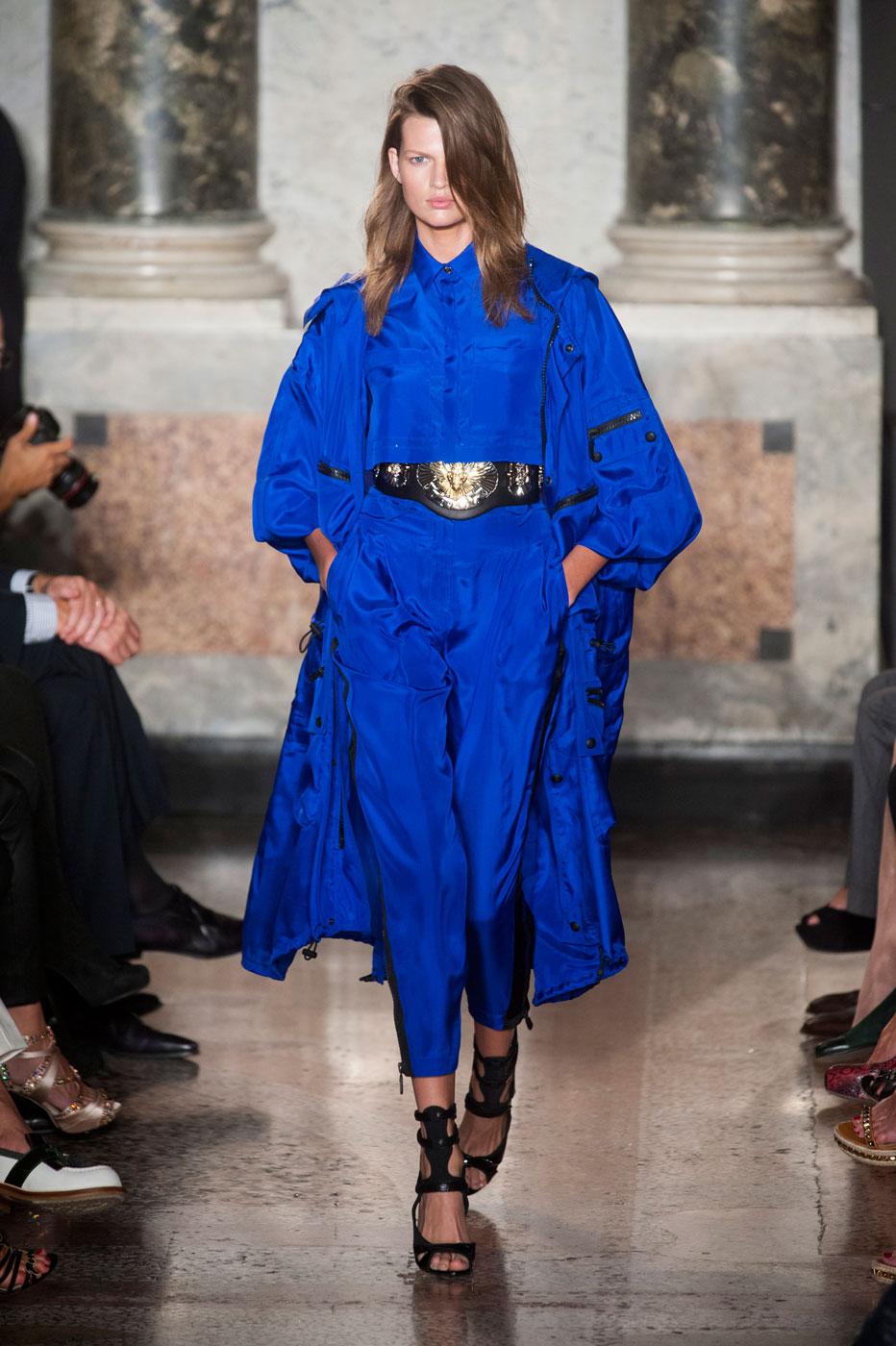 #2. EMILIO PUCCI Питер Дундас (Peter Dundas), креативный директор марки, дословно интерпретировал понятие «спортшик». Поэтому в коллекции Emilio Pucci весна-лето 2014 есть шорты для бега из серебряной парчи, золотые топы из сетки. Но одновременно с этим – африканские мотивы в вышивке и аксессуарах. Я перестала воспринимать происходящее после того, как на подиум вышла модель Бетте Франке (Bette Franke) в топе и брюках цвета электрик и в длинной парке. Я пока не знаю как, но она будет моей...