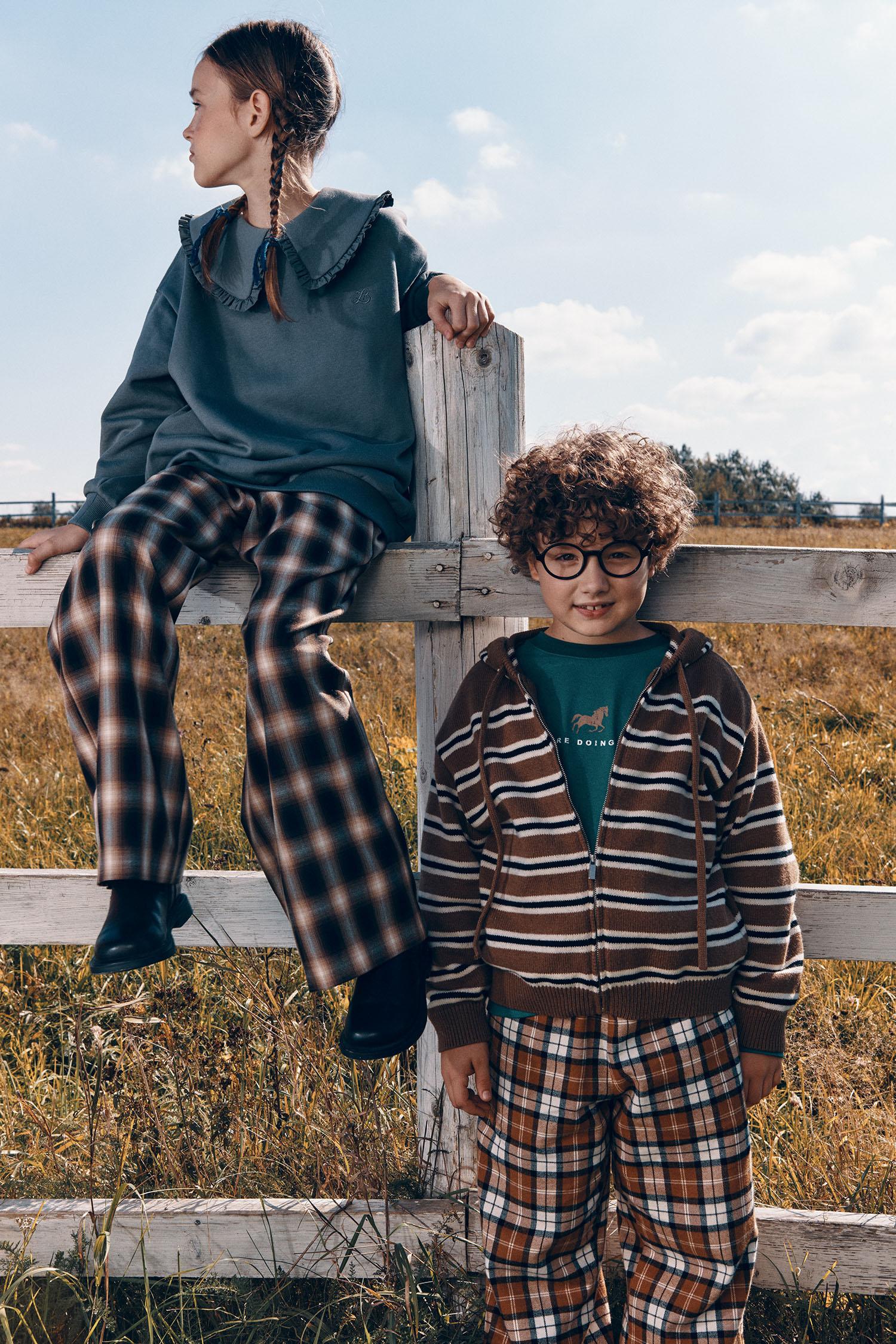 LIMÉ представляет новую детскую коллекцию, вдохновленную эстетикой загородной жизни. В коллекцию вошли комфортные модели для прогулок и игр на свежем воздухе: вельветовые брюки и рубашки для мальчиков и девочек, шерстяные кардиганы и свитеры, клетчатые юбки, платья и рубашки.