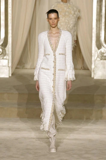 Но, к сожалению, дежавю — это самое верное слово, которым можно описать прошедшую коллекцию. Эти кейпы, ярусные юбки, расшитый бисером твид, силуэты со спущенной талией мы видели и на прошлой кутюрной коллекции Дома.