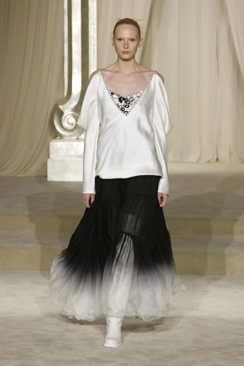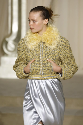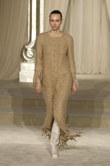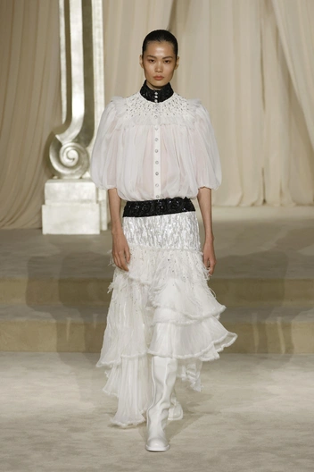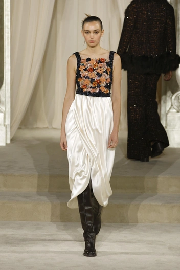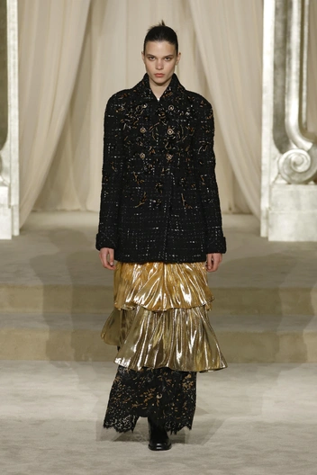 Но, к сожалению, дежавю — это самое верное слово, которым можно описать прошедшую коллекцию. Эти кейпы, ярусные юбки, расшитый бисером твид, силуэты со спущенной талией мы видели и на прошлой кутюрной коллекции Дома.