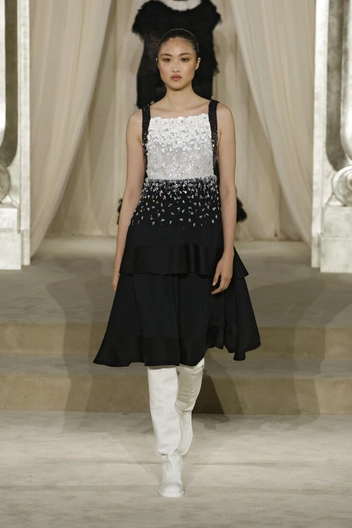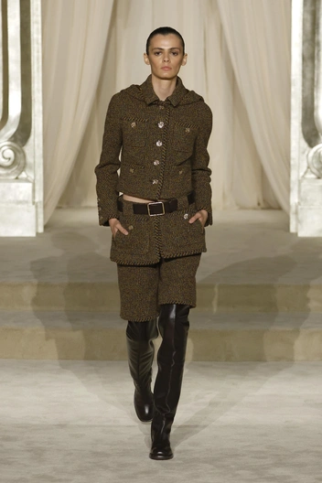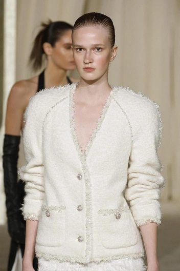 Еще одной деталью, разочаровавшей фэшн-критиков, стала обувь — а точнее, ее отсутствие. Мы увидели только два варианта аксессуара от Chanel: высокие сапоги-трубы черного цвета, и такие же сапоги, только белого цвета. Мы понимаем такой подход у брендов, которые в принципе не выпускают обувь. Они закупают несколько максимально нейтральных моделей, которые не будут отвлекать внимание от одежды, и это не вызывает вопросов. Но когда речь о Chanel, в арсенале которых есть и балетки, и туфли Мэри Джейн, и полусапоги, и еще буквально десятки вариантов обуви к осенне-зимнему сезону, видеть только сапоги и только в двух оттенках — явление, которое трудно объяснить.
