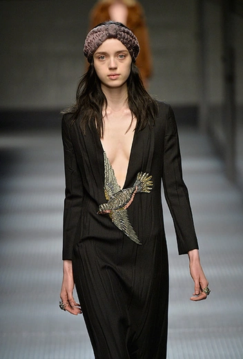Том Форд превратил Gucci в олицетворение минималистичного гламура (как бы парадоксально это ни звучало). Он воспевал сексуальность, добротный шик, дорогие материалы и красивое тело. Фрида Джаннини, в целом, придерживалась той же стратегии. Разве что отринула минимализм, добавила больше цвета и отделку в стиле «дорого-богато».