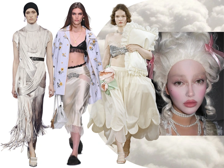 Кружево и атлас будут сопровождать нас всюду следующим летом, считает Heuritech. Впрочем, это нисколько не удивительно. Вот уже который сезон на подиуме главенствует бельевой стиль, а эстетика Марии-Антуанетты, трансформировавшаяся в соцсетях в coquette core получила новый взрыв интереса — все благодаря соответствующей выставке в Музее Виктории и Альберта в Лондоне.