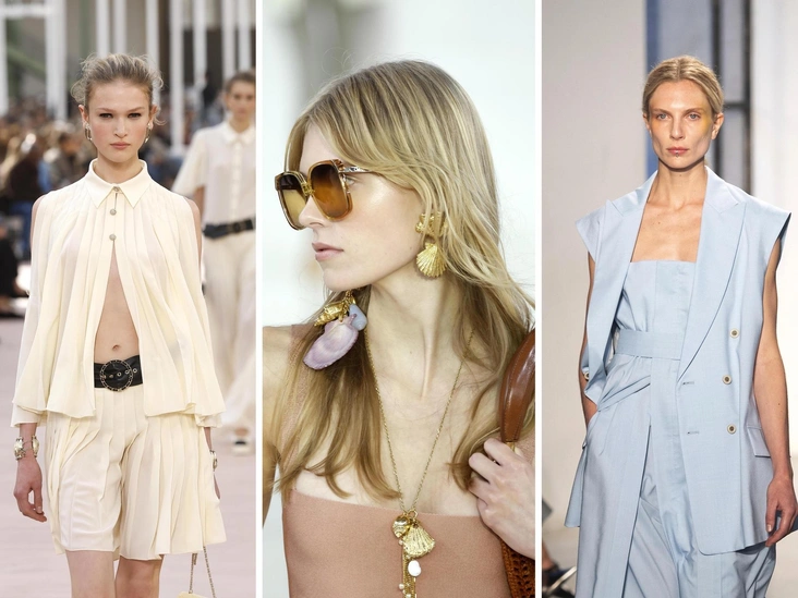 Перед каждым теплым сезоном в моду входят пастельные оттенки, и на этот раз все тоже без эксцессов. Самое частое присутствие на подиумах было, конечно, у сливочно-желтого, или butter yellow — причем, вещи в этом цвете можно назвать долгосрочным вложением, ведь оттенок останется с нами до конца текущего года. Все оттенки сливочного масла — доминирующий цветовой тренд лета 2025 года. Второй по упоминанию — нежный мятный, который видели на показах многих брендов. Несмотря на то, что он довольно холодный, образ в нем смотрится по-летнему свежо, а еще мятный легко сочетать с другими трендовыми оттенками. Например, коралловый или пудро-розовый цвет добавит образу контрастности и яркости. И последний цветовой тренд лета 2025 — небесно-голубой. Интересное комбо он может составить с другим фаворитом сезона — сливочно-желтым, а если добавить третьего игрока — коричневый цвет, то статус стильной штучки вам обеспечен.