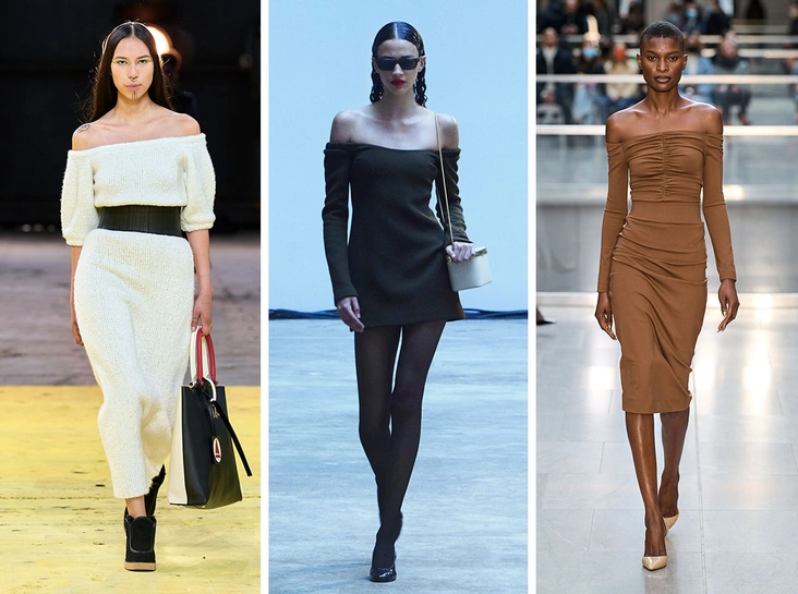 Еще пару сезонов назад fashion-инфлюенсеры, да и сами дизайнеры фыркали в сторону вещей с открытой линией плеч: мол, это уже давно пережиток прошлого. А вот в осенне-зимнем сезоне 2022/23 креативные директора брендов неожиданно вернули позабывшийся многим тренд. Через полгода переоденемся в трикотажные платья мини и миди, открывающие плечи и ключицу (читайте также: Как правильно хранить трикотажные вещи?)